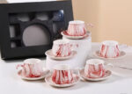 SET DE TAZAS CON PLATO DE CERÁMICA ESTILO MÁRMOL AZUL CON BLANCO Y ROJO CON BLANCO
