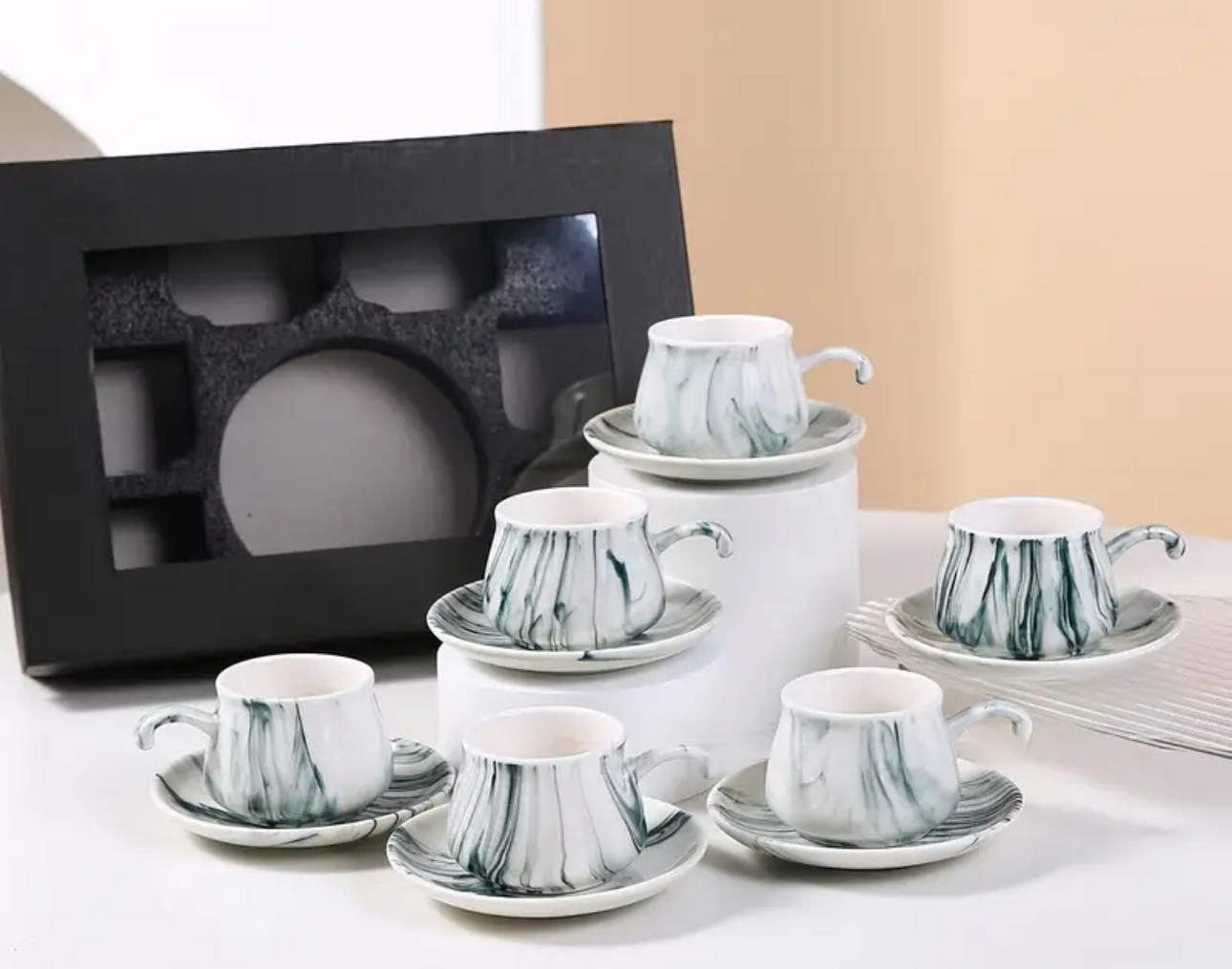 SET DE TAZAS CON PLATO DE CERÁMICA ESTILO MÁRMOL