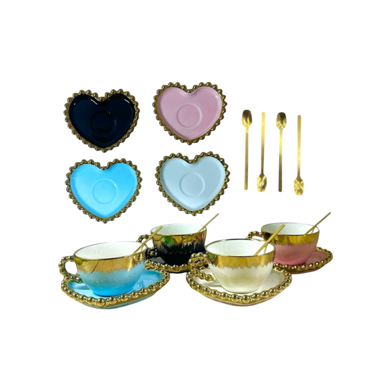 Taza corazón con plato y cuchara